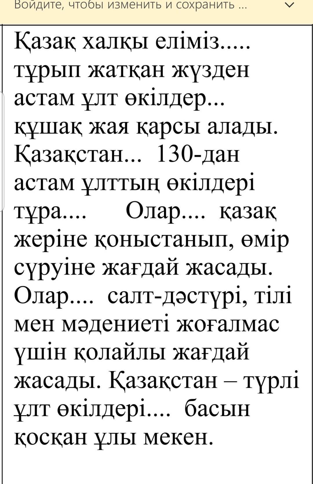 Қазақ халқы елімізде тұрып жатқан жүзден астам ұлт өкілдеріне құшақ жая қарсы алады. Қазақстанда 130дан астам ұлт өкілдері тұрады. Оларға қазақ жеріне қоныстанып, өмір сүруіне жағдай жасады. Олардың салт - дәстүрі, тілі мен мәдениеті жоғалмас үшін қолайлы жағдай жасады. Қазақстан - түрлі ұлт өкілдерінің басын қосқан ұлы мекен.