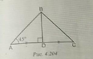 Т.к угол А равен 45° и угол АDB равен 90° => угол ABD равен 45°=> угол А равен углу ABD=> BD равен AD или BD равен АС/2