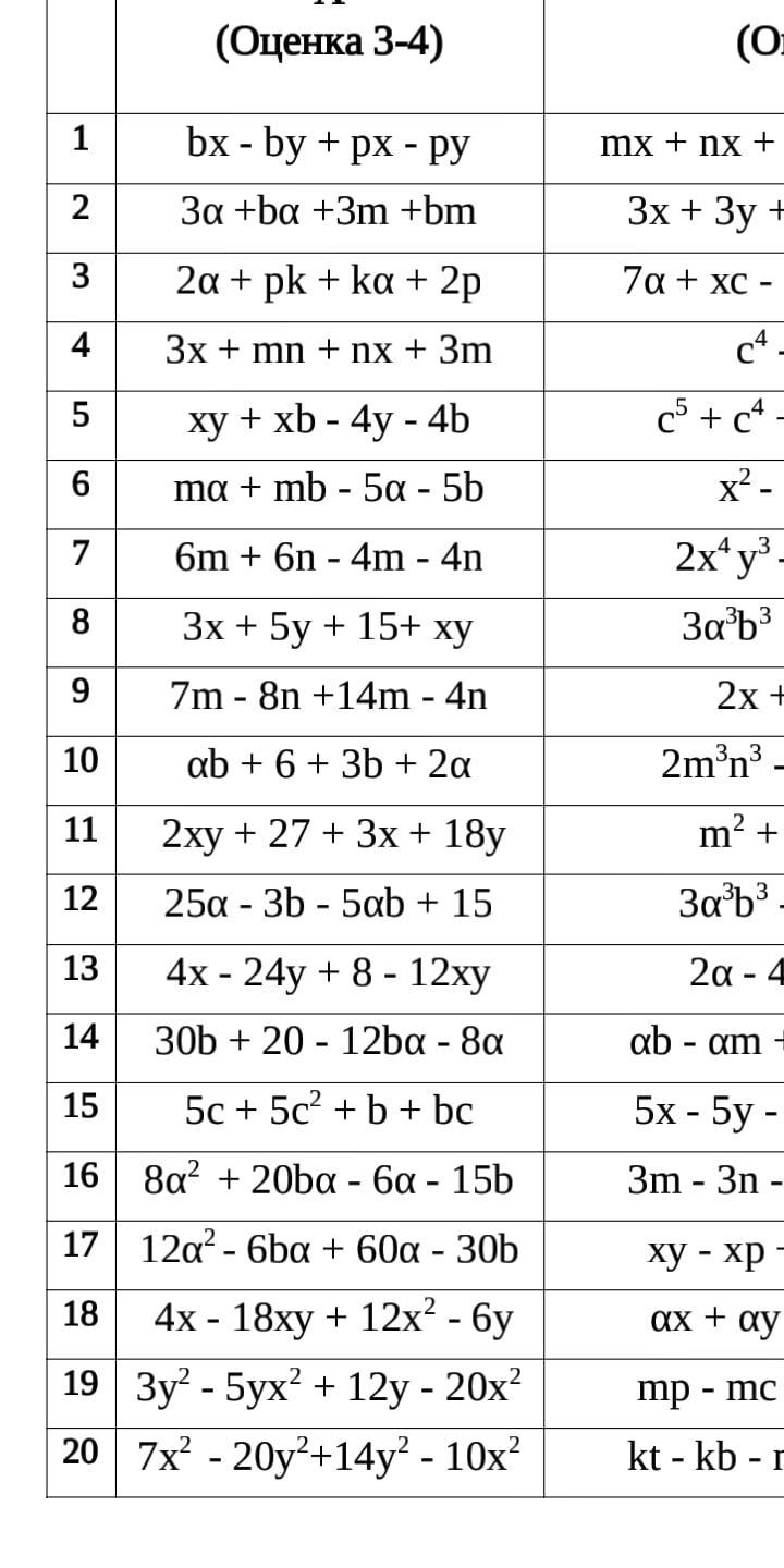 Помогите пожалуйста решить способом разложения многочлена на многочлен способом группировки. (С 10-20)