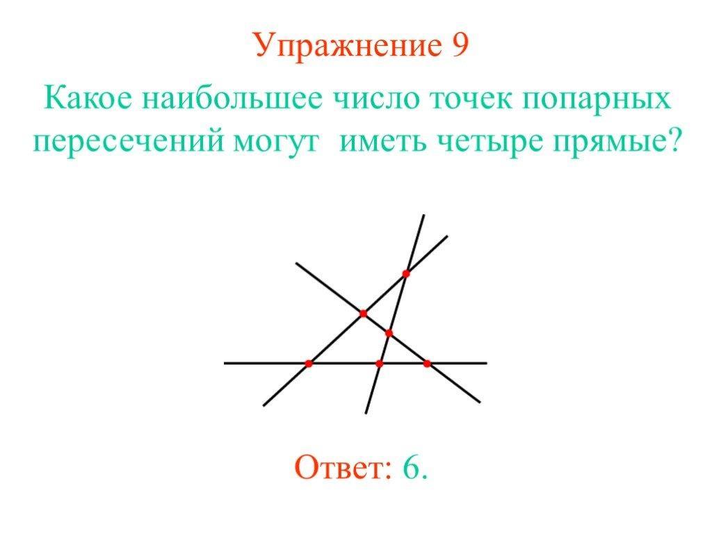 Какое наибольшее число точек пересечения могут иметь 4 прямых? Начертите.