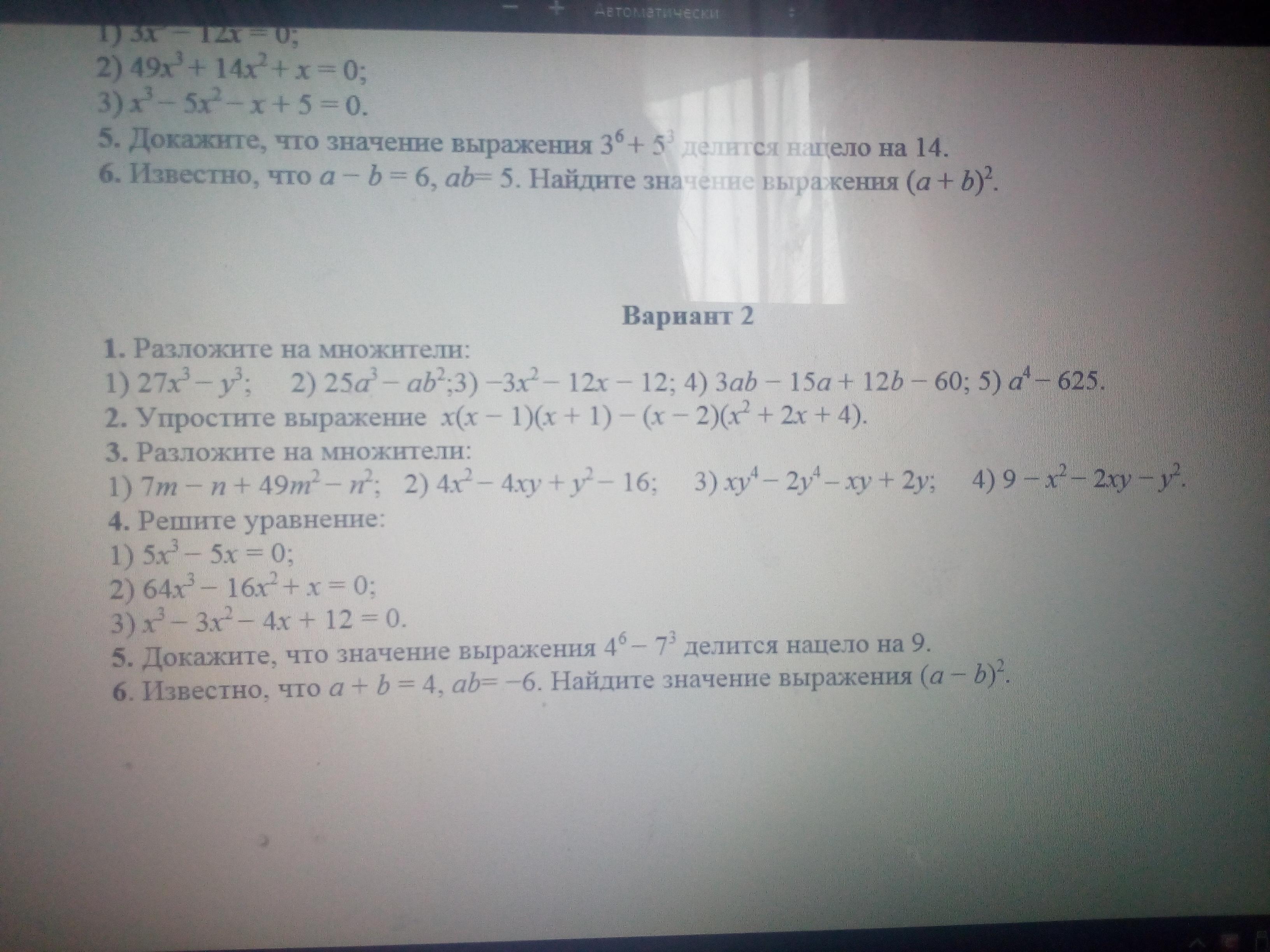 Тема «Разложение многочленов на множители: вынесение общего множителя заскобки, группировка, применение формул сокращенного умножения»