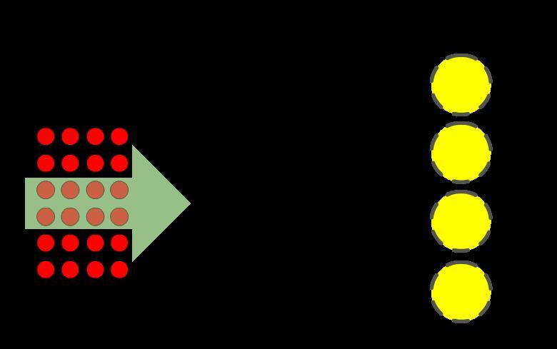 Изучите схему эксперимента ниже. Предположите, как будут вести себя альфа-частицы при столкновении с атомами золота. В нашем эксперименте мы считаем, что между атомами почти нет промежутков, атомы значительного размера и атомы электрически нейтральны. Масса атомов значительно больше массы альфа-частицы.
