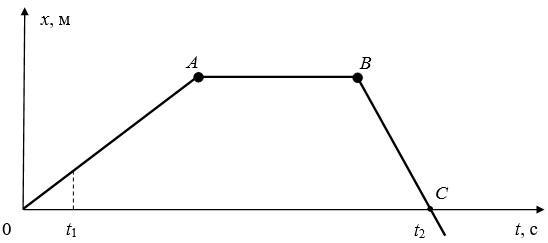 На рисунке представлен график зависимости координаты от времени для тела, движущегося вдоль оси Ох