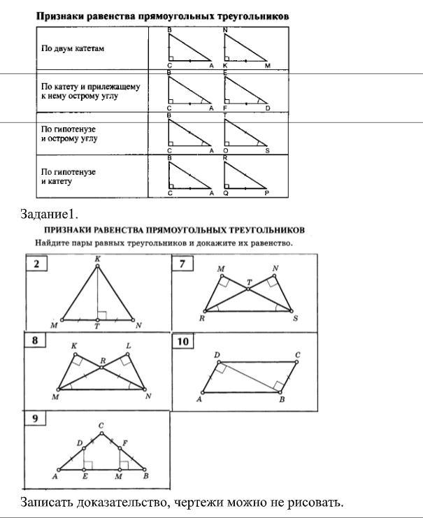 Найдите пары равных треугольников и докажите их равенство 7 класс