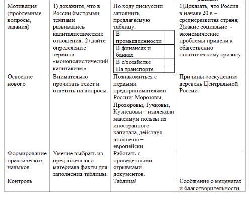 докажите, что в России быстрыми темпами развивались капиталистические отношения; 2) дайте определение термина «монополистический капитализм» По ходу дискуссии заполнить предлагаемую таблицу: