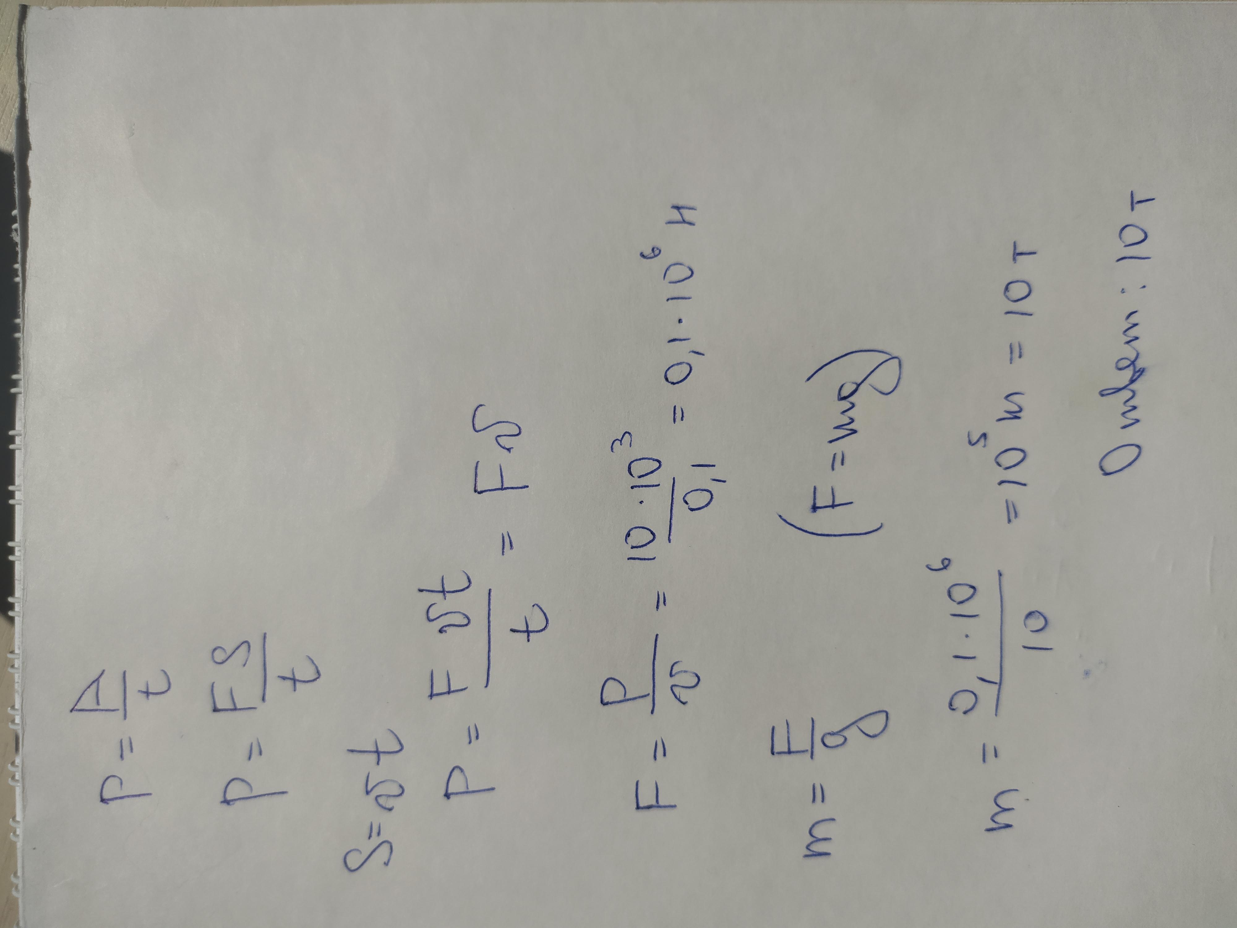 Подъёмный кран поднимает грузы со скоростью υ = 0,1 м/с. Груз какой максимальной массы Mmax может поднять этот кран, если мощность мотора N = 10 кВт? Коэффициент g = 10 Н/кг.