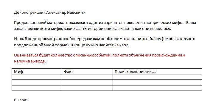 Ребят помогите пожалуйста, быстро не прошу. Видео( Деконструкция. Клим Жуков о советском историческом фильме «Александр Невский»). Задание в прикрепленном фото
