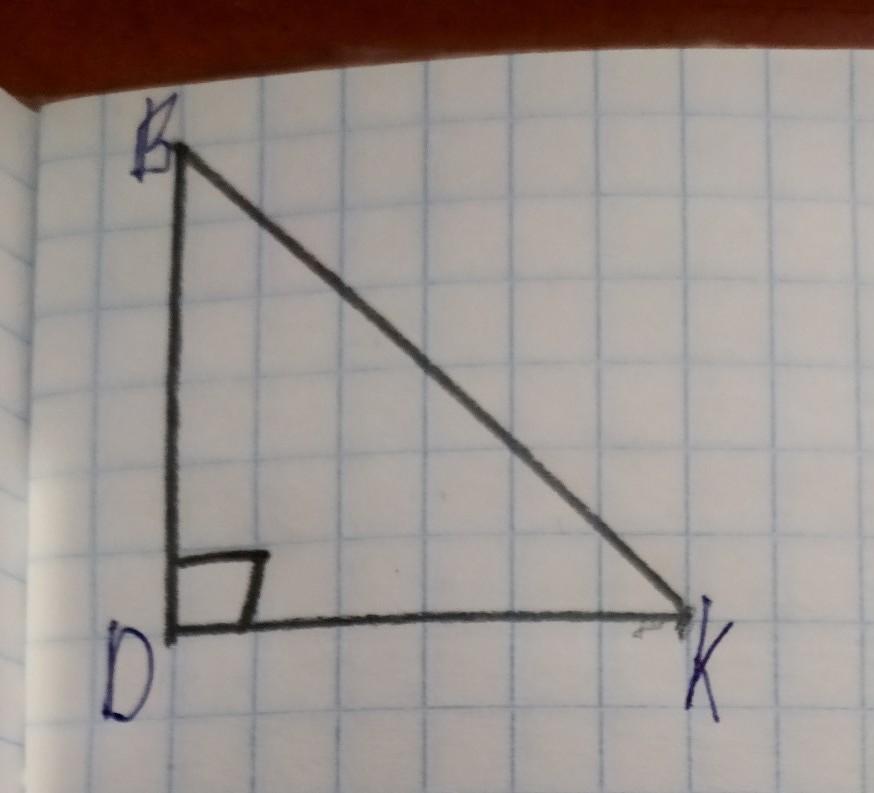Треугольник DBK прямоугольный, угол B равен 15°, найти угол К​