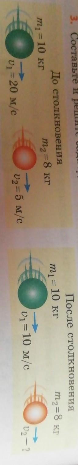 Два шара, массой 10 кг и 8 кг, движутся в одном направлении. Скорость первого шара равна 20 м/с, а скорость второго = 5 м/с. После столкновения 1 и 2 шара, скорость первого шара (который был позади второго) уменьшилась в 2 раза. Что произошло со скоростью второго шара?