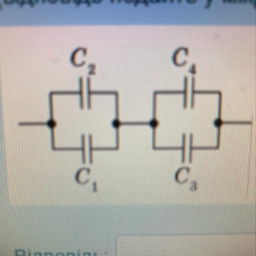 Визначте ємність батареї конденсаторів (див. рис.), якщо C1 = C = C = 4 мкФ,