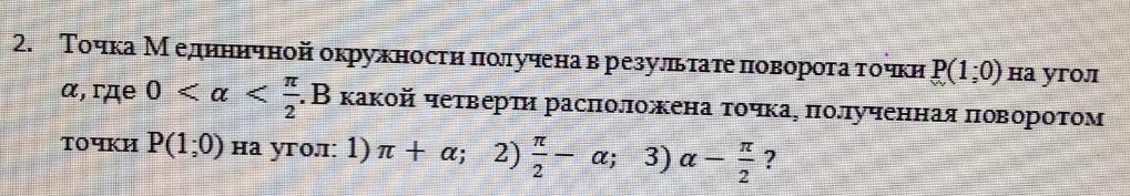 . В какой четверти расположена точка, полученная поворота точки p(1;0) на угол: 1)