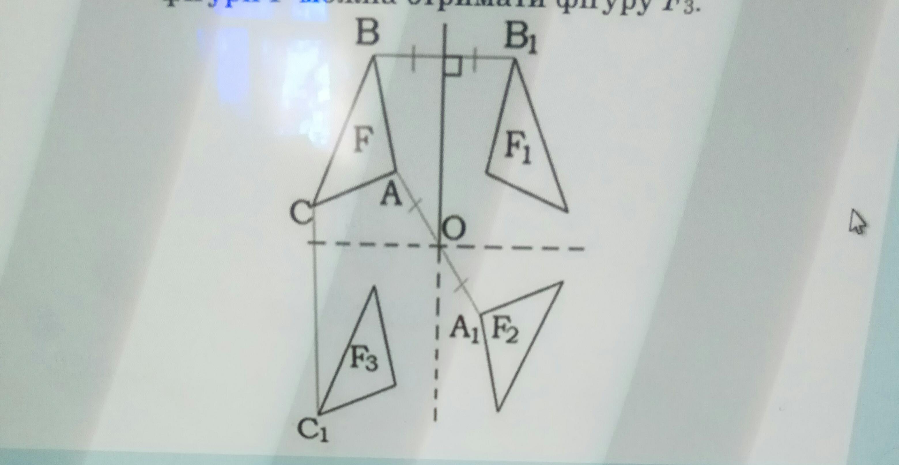 Укажите, какой вид геометрического преобразования, с помощью которого из фигуры F можно получить фигуру F3? Варианты ответа: поворот, осевая симметрия, центральная симметрия, параллельное перенесение
