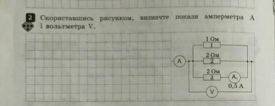 скориставшись рисунком визначте покази амперметра і вольтметра в​
