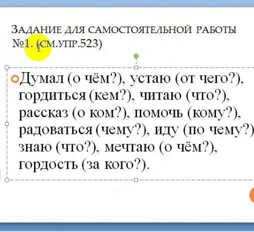 думал о проблемах, устаю от работы, гордиться сыном, читаю журнал, рассказ о Тарасе Бульба, помочь маме, радоваться победе, иду по дороге, знаю английский язык, мечтаю о машине, гордость за ученика.