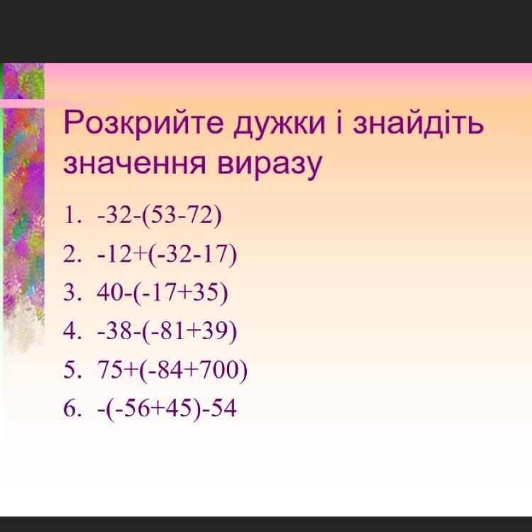 1.-13 2.-61 3.22 4.4 5.691 6.-43