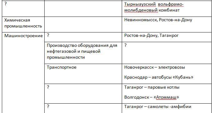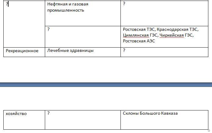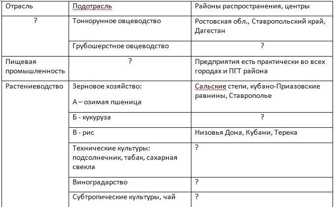 Помогите заполнить таблицу: хозяйство Европейского юга