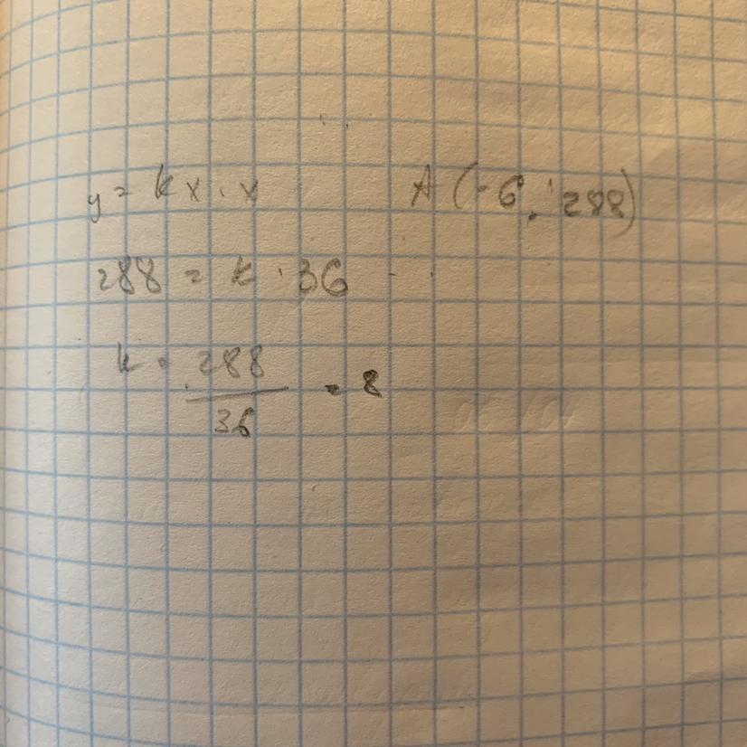 найдите коэффициент k в уравнении параболы y= kx*x , зная что парабола проходит через точку A(-6; 288)