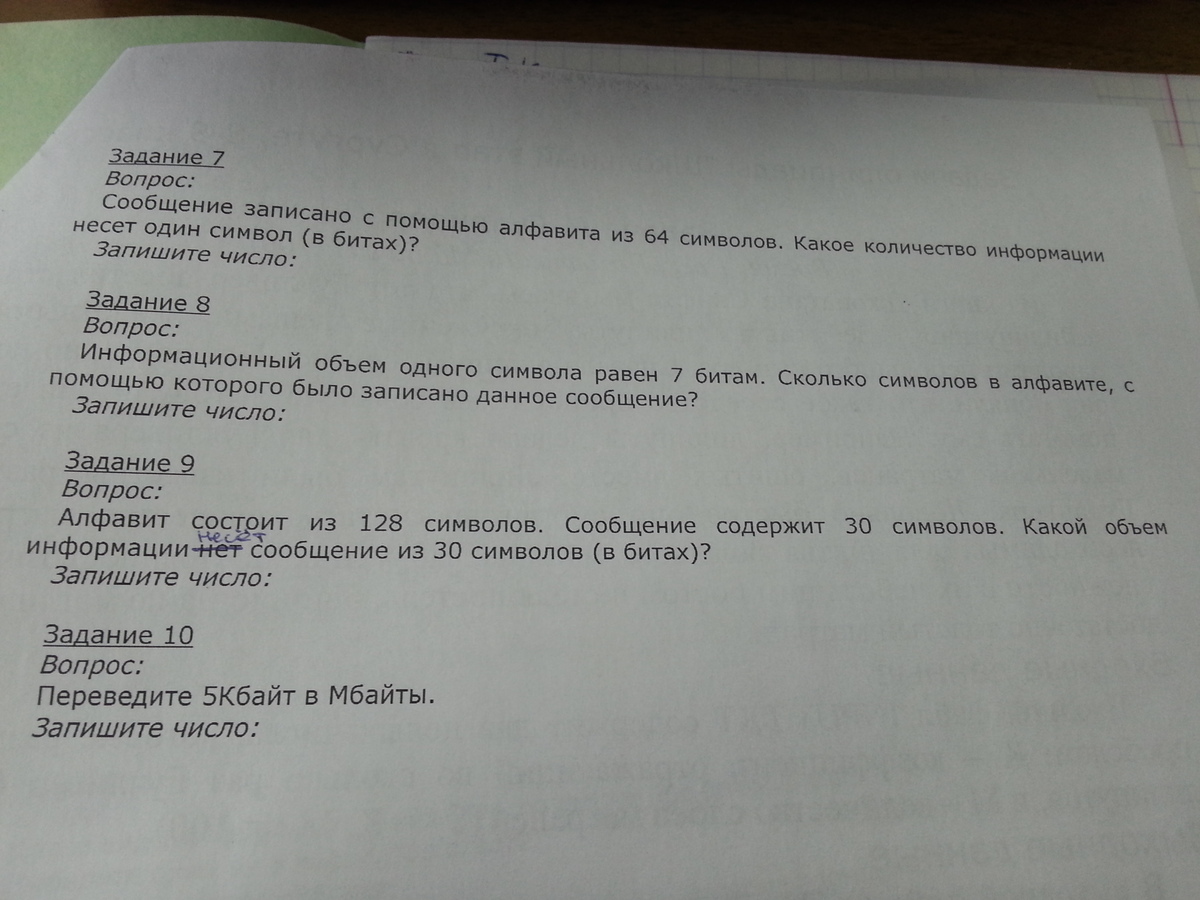 № 10. 5 Кб/1024=0,0048828125Мб