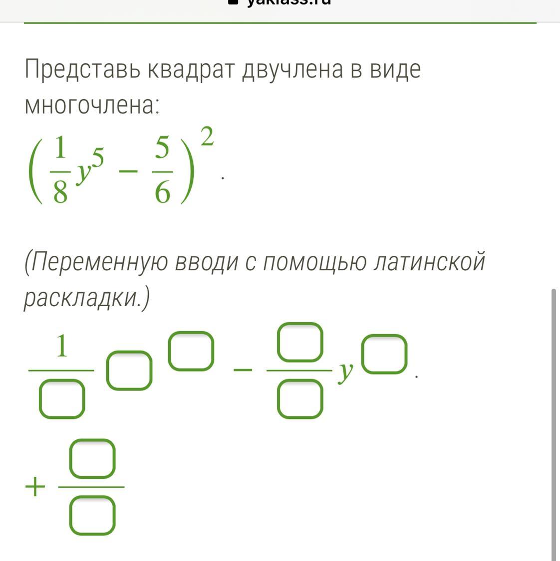 Квадрат разности (обыкновенные дроби)