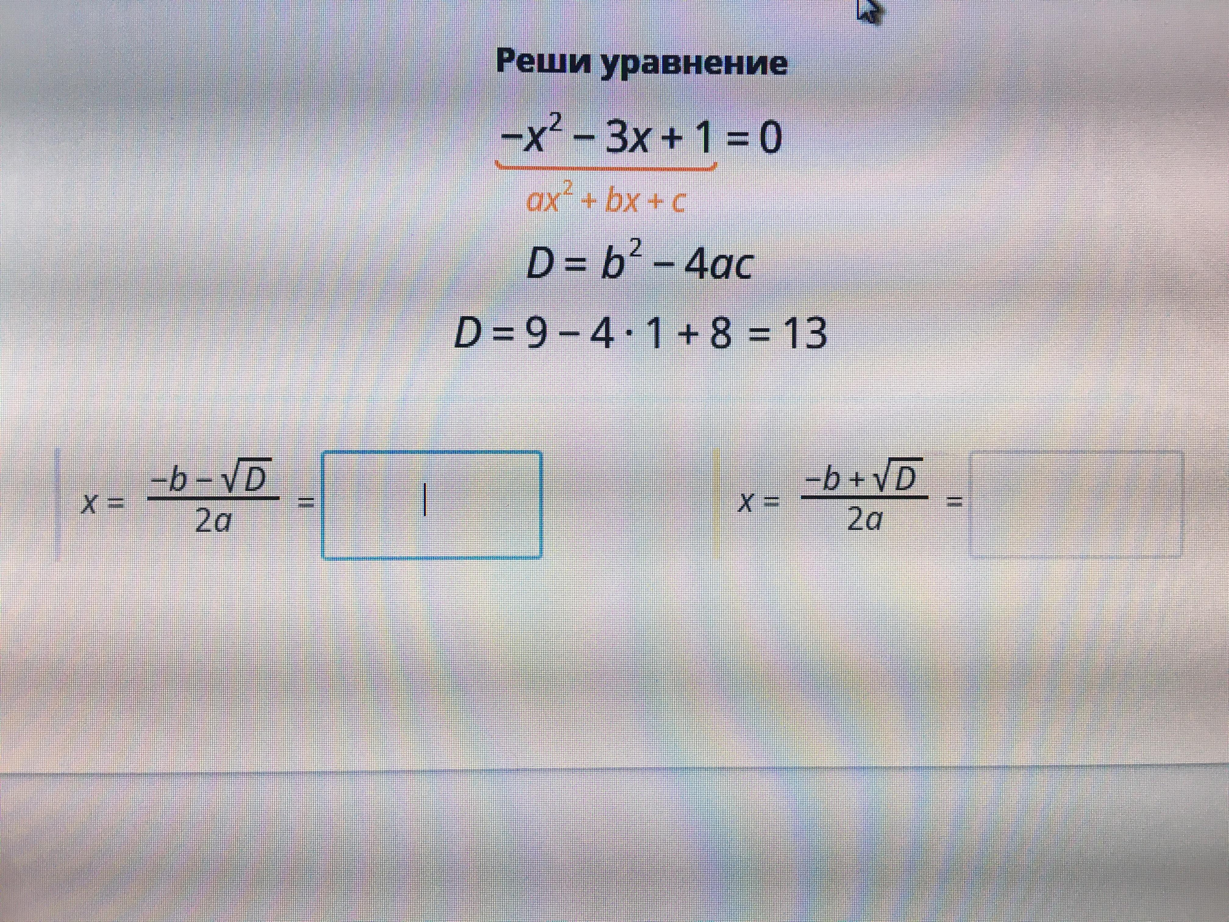 Решите уравнение с дискриминантом
