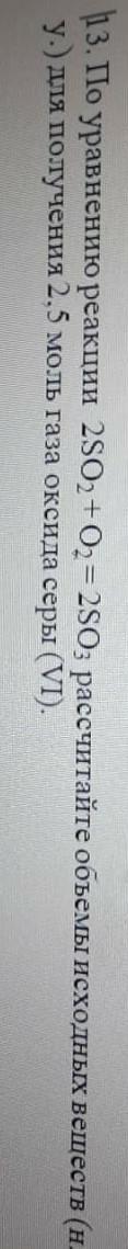по уравнению 2so2+02=2so3 рассчитайте объёмы исходных веществ для получения 2.5 моль газа оксиды серы 6