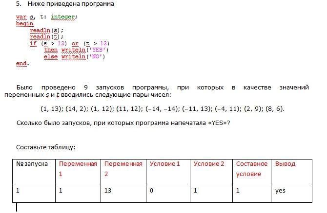 Было проведено 9 запусков программы, при которых в качестве значений переменных s и t вводились следующие пары чисел: