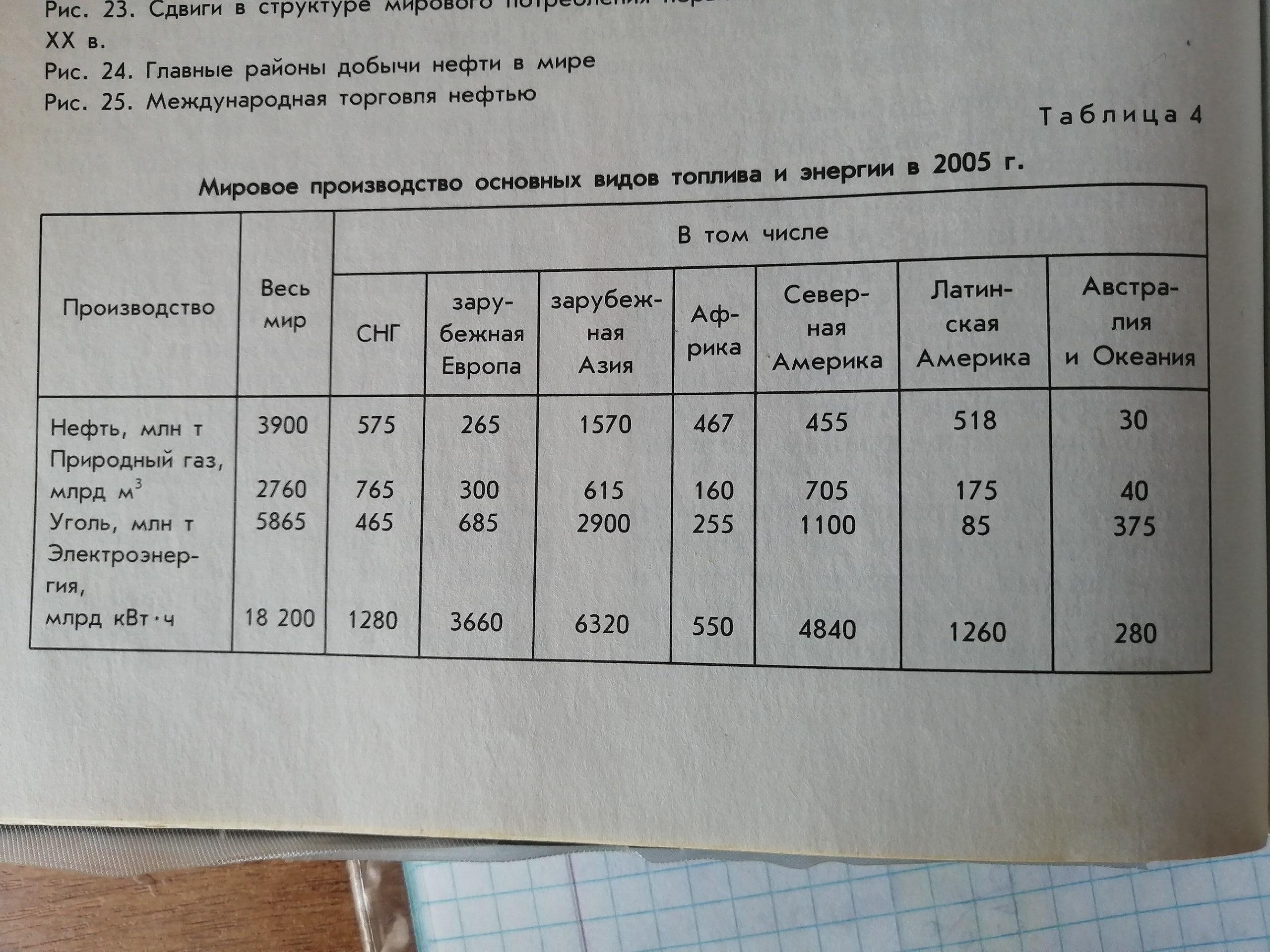 Вывод по таблице Мировое производство основных видов топлива и энергии в 2005 г.