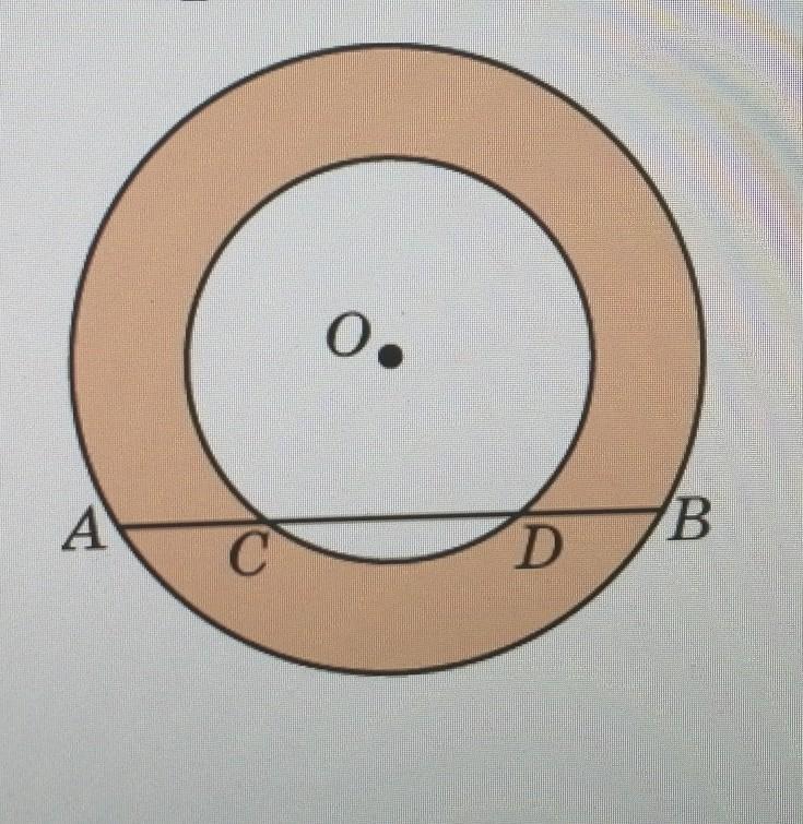 хорда AB большей окружности кольца пересекает его меньшую окружность в точках C, D. Докажите, что отрезки AC и BD равны.