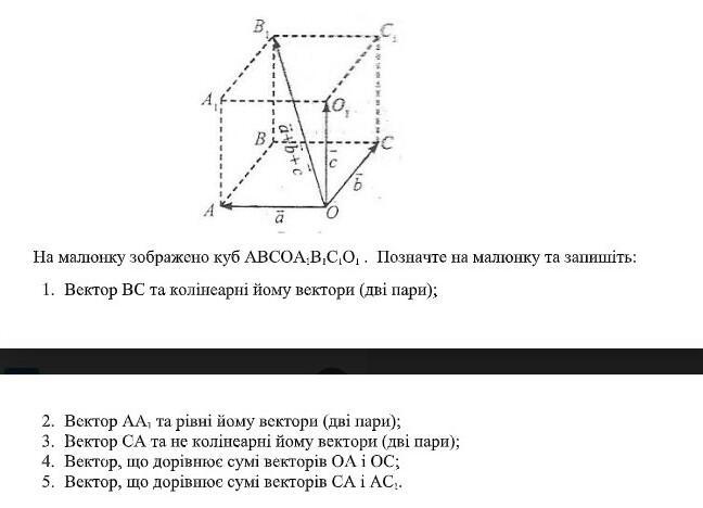 На малюнку зображено куб ABCOA1B1C1A1. Позначте на малюнку та запишіть...