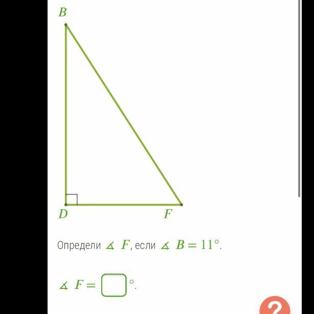 Угол F = 180 - 90 - 11 = 79 градусов