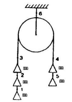 На рис. 10 изображены одинаковые грузики, прикрепленные к нити, переброшенной через блок. Трением в системе и массой блока пренебречь.