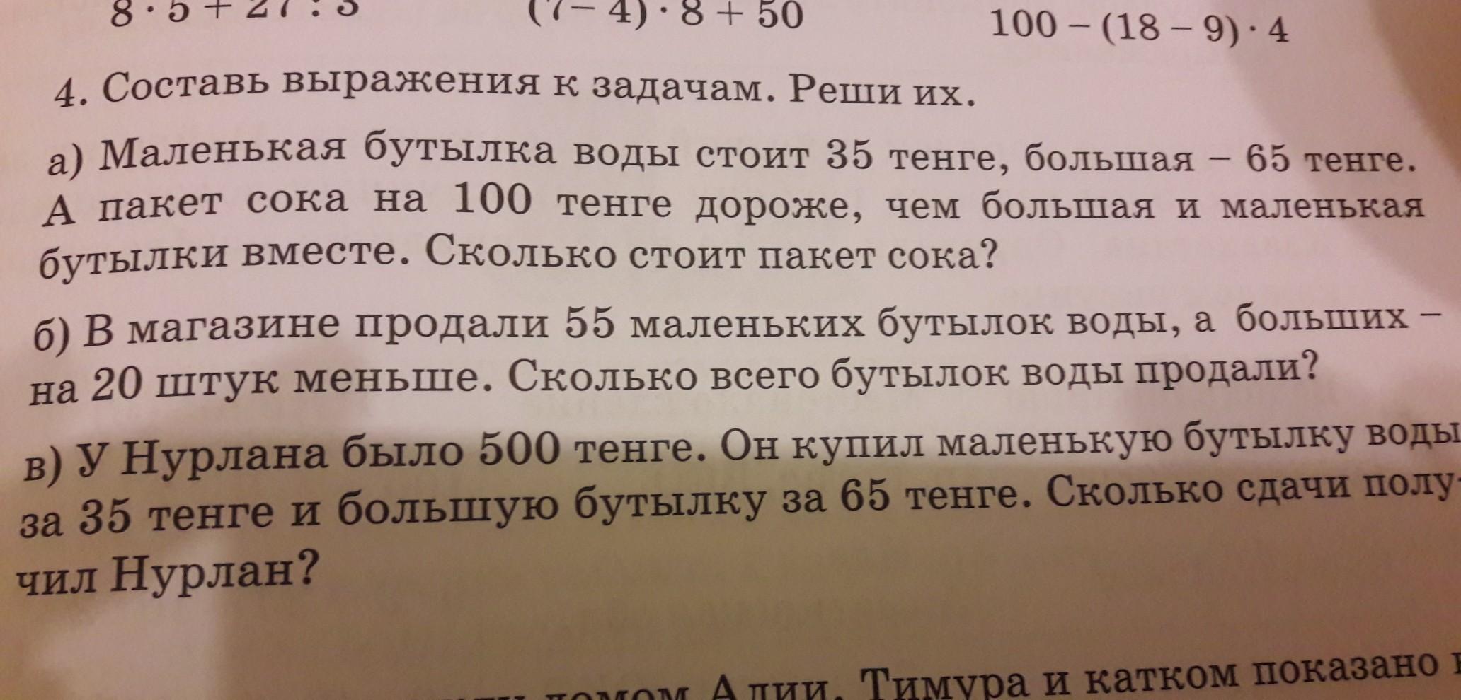 в)500-(35+65)=400 - сдачи получит Нурлан