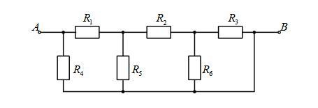 Определитьсопротивление участка цепи, если сопротивление каждого резистора 5 Ом. Подробное решение(правило Кирхгофа)