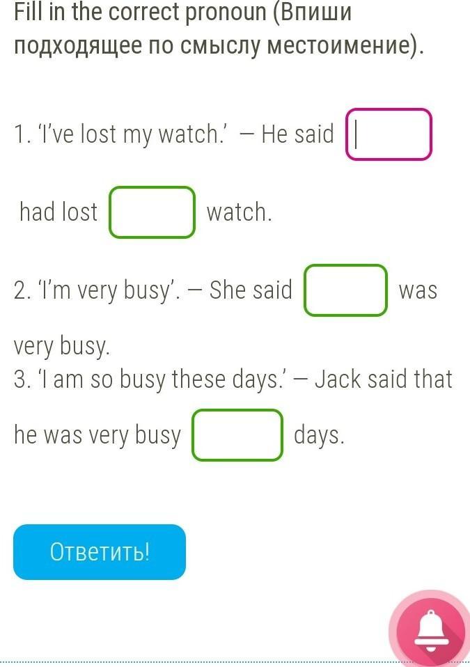 1)He said that he had lost his watch.
