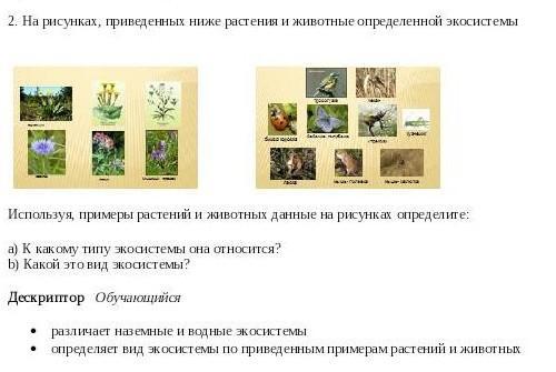 на рисунках приведённых ниже растения и животные определеной экосистемы