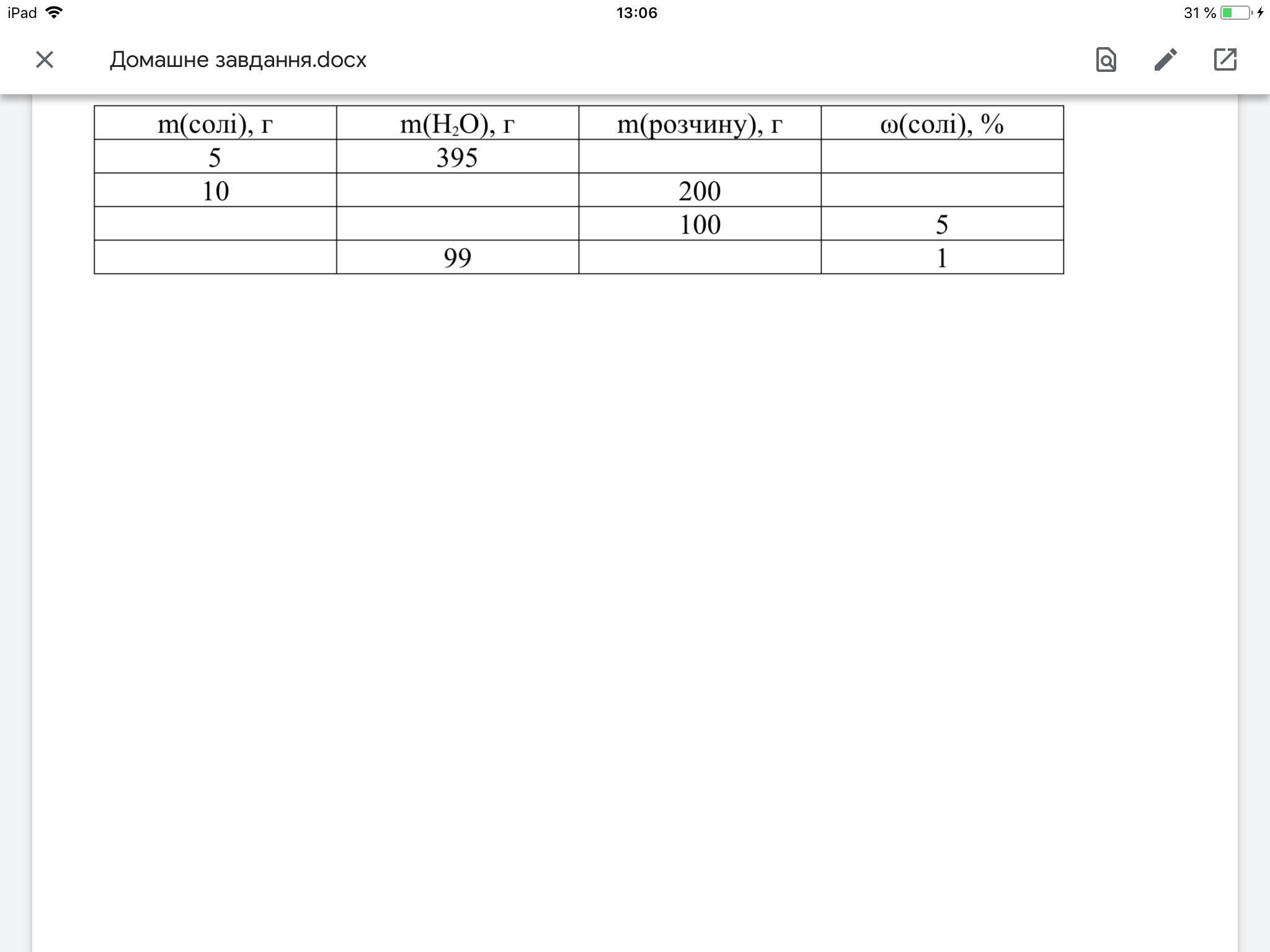 m(соль), g m(H2O) , g m(ppa) , g W(соль) %