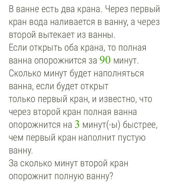 1)Первый кран наполнит пустую ванну за сколько минут?