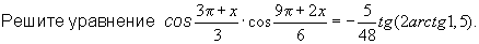cosfrac{3pi+x}{3}*cosfrac{9pi+2x}{6}=-frac{5}{48}*tg(2arctg1.5)\
