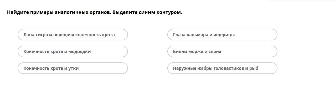 бивни моржа и слона,наружные жабры головастиков и рыб, конечность крота и медведки