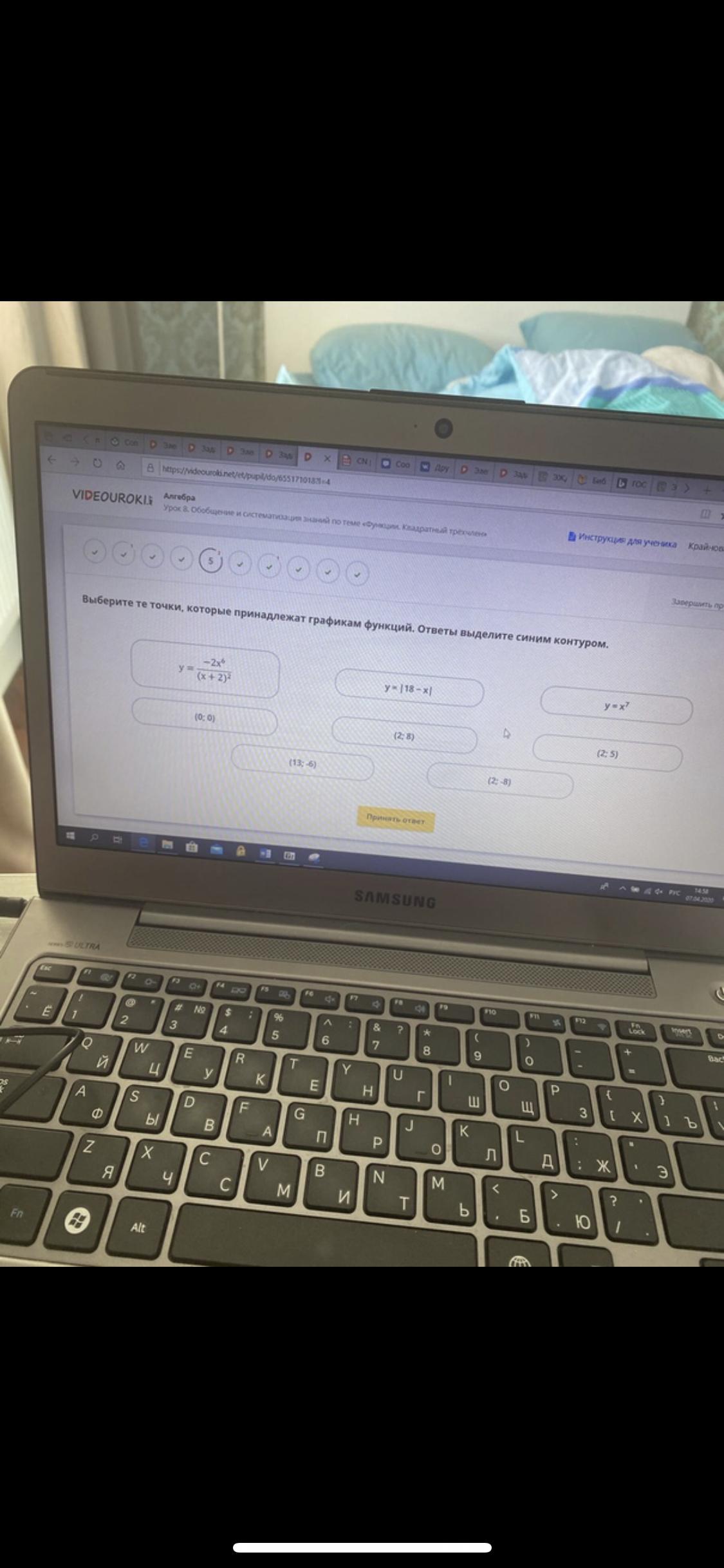Тут дано 3 графика и 5 точек, нужно из этих точек выбрать ответ