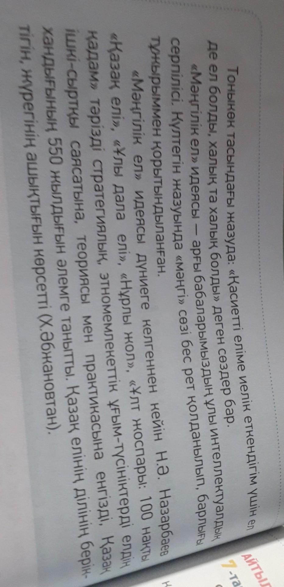 2)2014 жылдың басында Елбасымыз Н. Ә. Назарбаев "ХХІ ғасырдағы Қазақстанның ұлттық идеясы" - "Мәңгілік ел"деп атады.