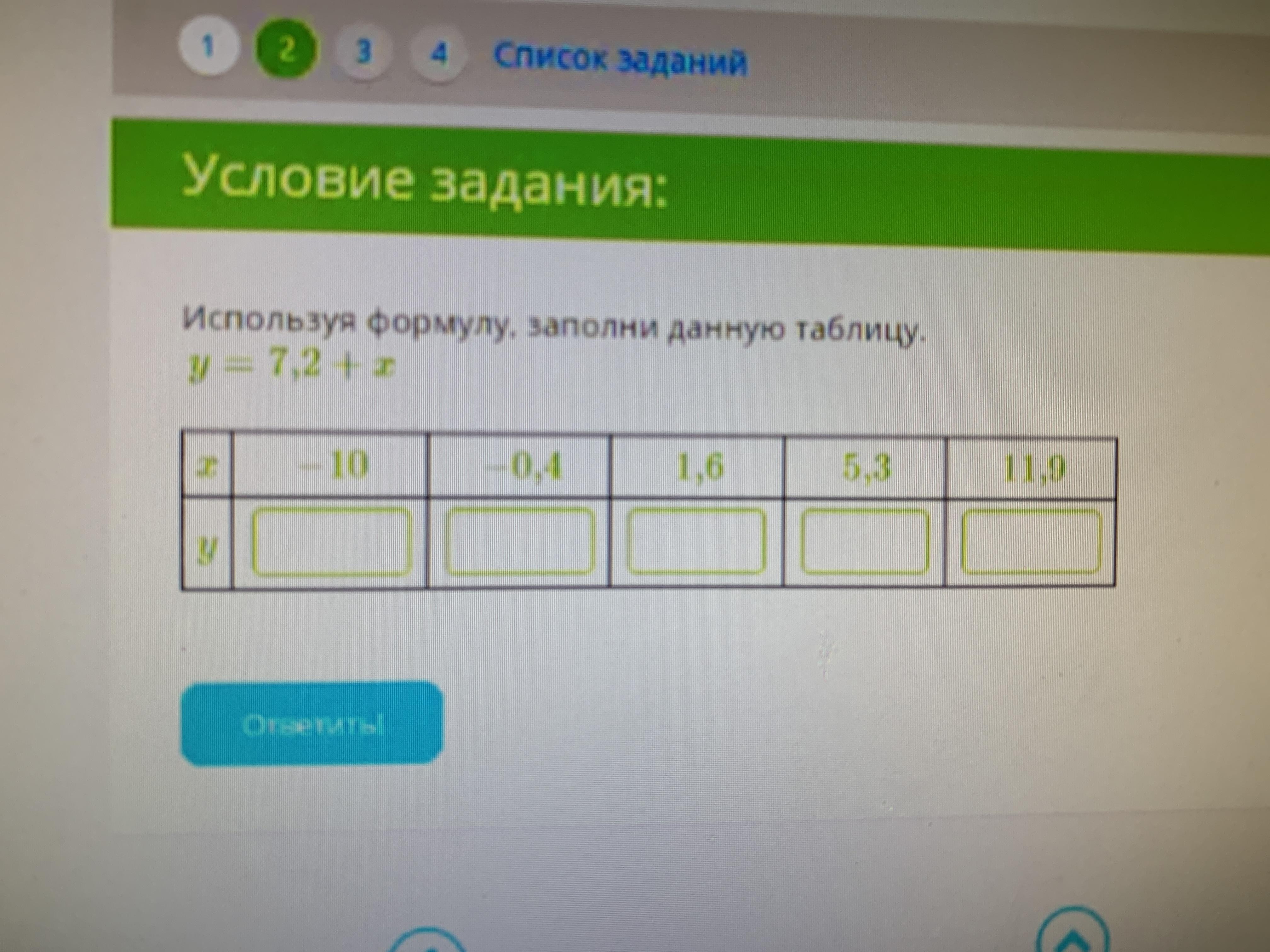 x=-10; у = 7,2-10 = -2,8