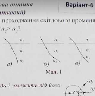 у якому випадку відображено проходження світлового променя через прозоре середовище, якщо n1=n2>n3 ?