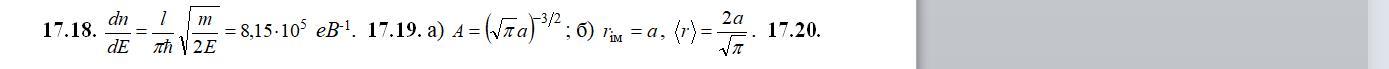 17.18)Вычислить плотность состояний (количество энергетических уровней в единичном интервале энергий) для электрона в бесконечно глубокой потенциальной яме как функцию энергии и найти значение этого плотности для E= 1,0 эВ, если ширина ямы составляет l= 1,00 мм.