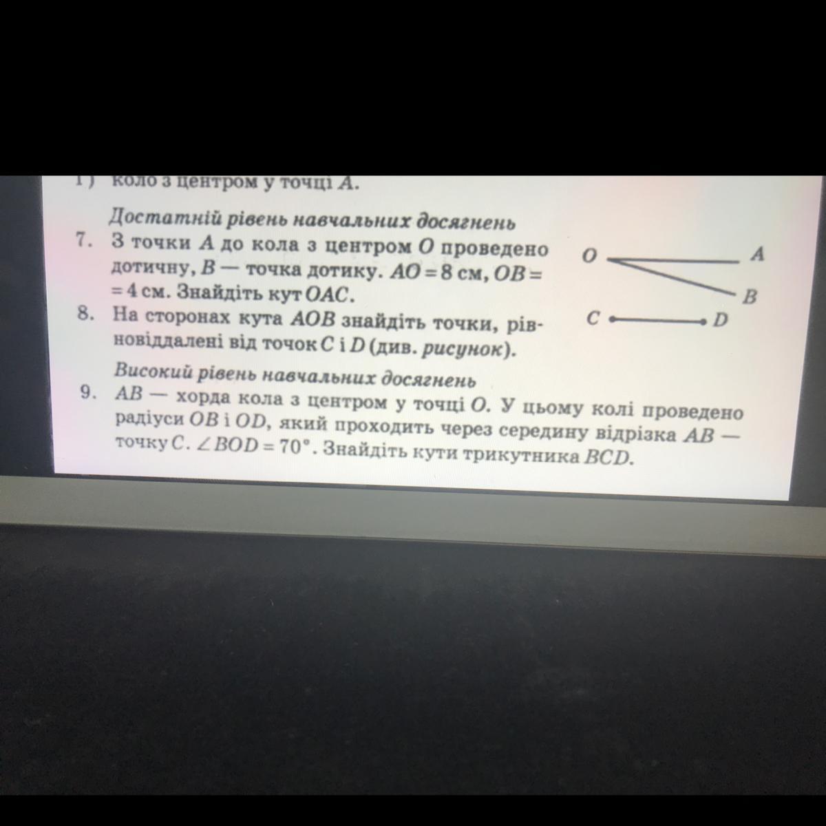 дотичну, В— точка дотику. АО = 8 см, OB =