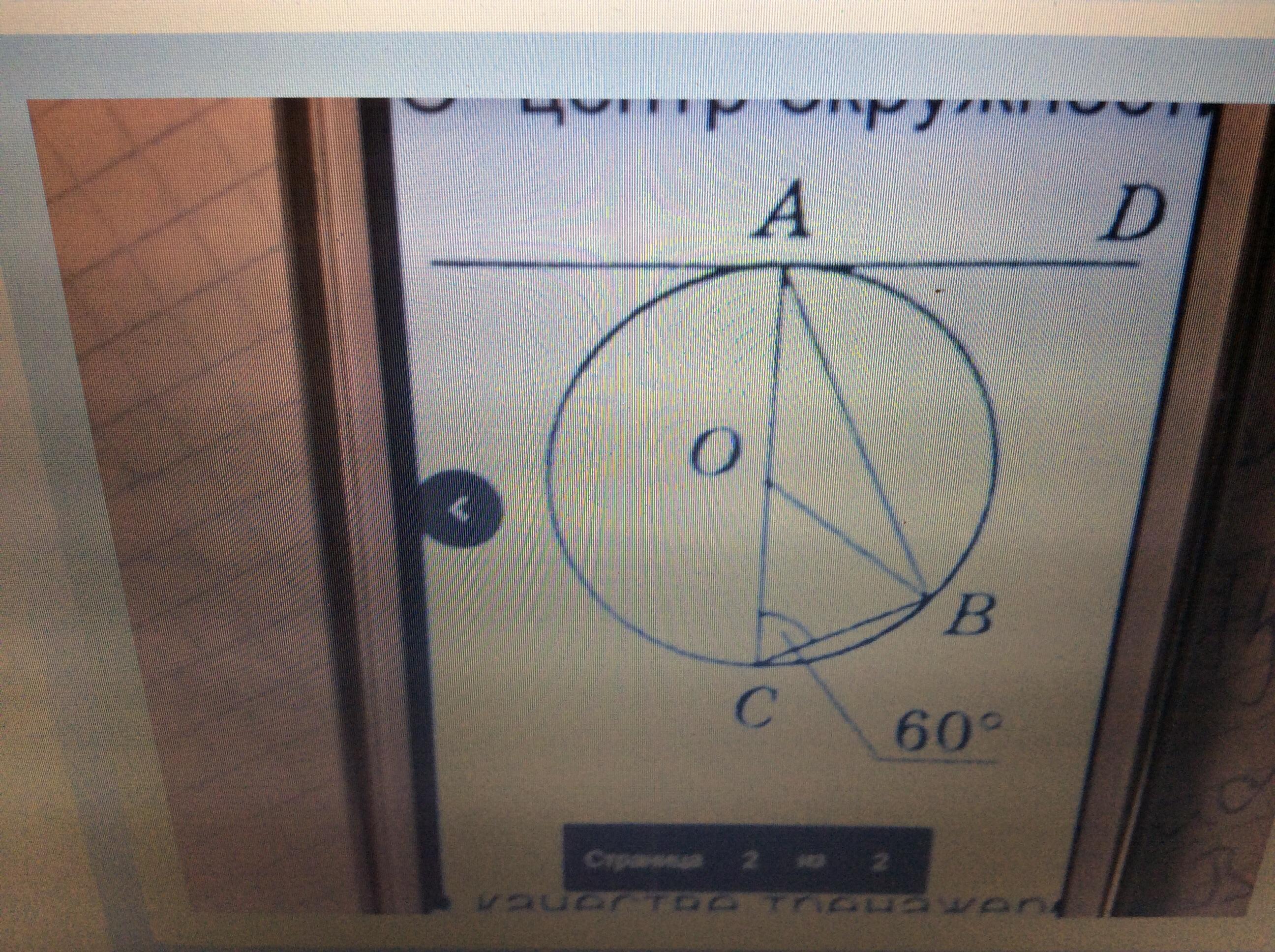 O- центр окружности, АD- касательная к окружности. Найти угол DAB. ПОМОГИТЕ ПОЖАЛУЙСТА!!!!!!!!!!!!!!