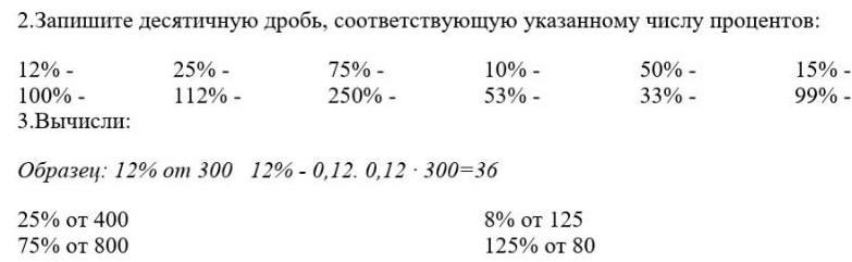 2. Запишите десятичную дробь, соответствующему указанному числу процентов: