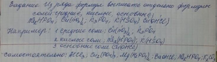 Из ряда формул выпишите отдельно формулы солей: средние, кислые, основные