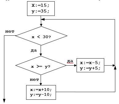 Какие из представленных значений примут переменные х и y (выделите их цветом)?