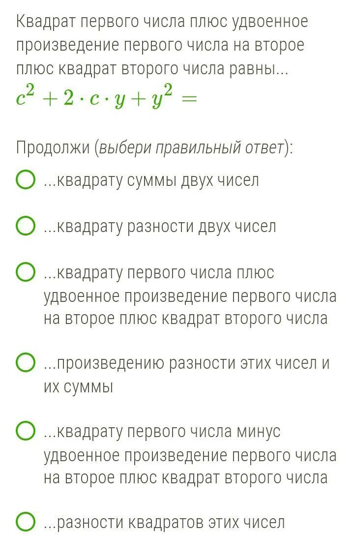 Ответ: квадрат суммы двух чисел